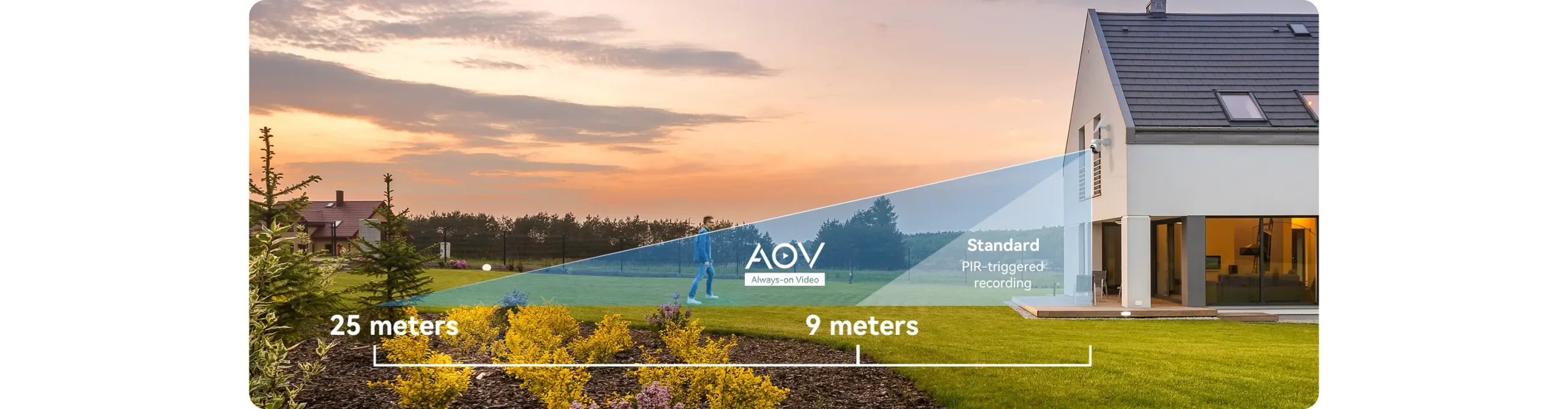 Based on AOV technology, the AOV PT has a much longer detection range than ordinary battery cameras, up to 25 meters, without false detection due to PIR inaccuracies.